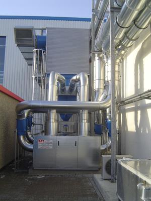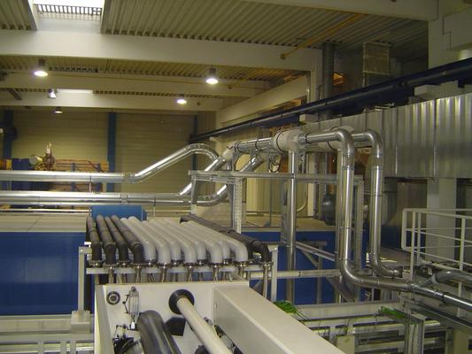 Im Außenbereich wurde die Absauganlage mit integrierter Verdichtungsanlage und isolierter Filteranlage installiert. Alle Rohrleitungen sind schall- und wärmeisoliert.
