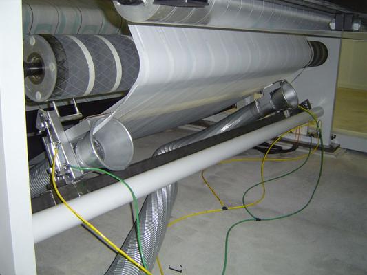 Es soll an einer Beschichtungsmaschine Staub und Fasern von der Bahn abgesaugt werden. Nach dem Beschichten mit einer klebrigen Substanz sollen beidseitig die Randbeschnitte endlos abgesaugt werden.