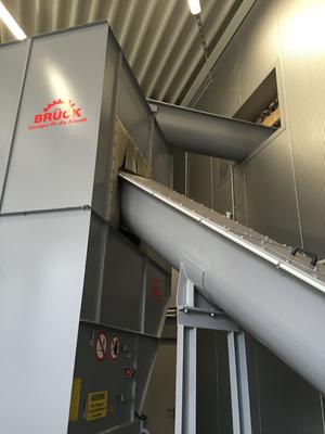 There, the baked goods are conveyed directly into the screw over a basket conveyor.